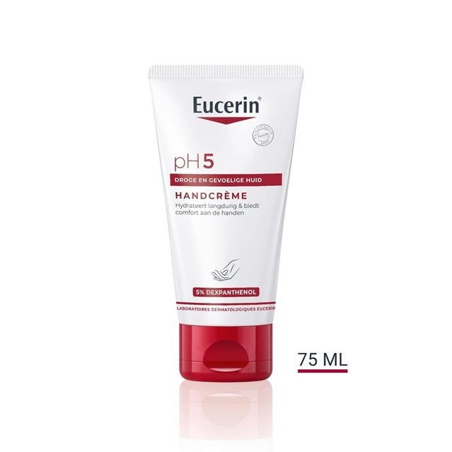 Eucerin pH5 reinigingsproducten en vochtinbrengende producten bevatten zeer milde, dermatologisch geteste ingrediënten die ideaal zijn voor de gevoelige huid en de gevoelige, droge handen en huid. Al deze producten worden uitstekend verdragen door de huid en beschermen uw huid tegen dagelijkse belasting uit de omgeving. De pH5-citraatbuffers in Eucerin pH5-producten stabiliseren op natuurlijke wijze de hydrolipidelaag van de huid. Glycerine en dexpanthenol beschermen tegen uitdroging en ondersteunen de regeneratie van de huid.